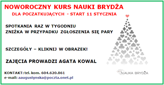 Od bardzo smutnej informacji zaczyna się Nowy Rok. 31 grudnia 2017 zmarł jeden z najstarszych, do końca aktywnych, krakowskich brydżystów Szczepan Kaczka. Uroczystosci pogrzebowe odbędą się w czwartek, 4 stycznia, godzina 13.00, na Cmentarzu Borkowskim przy ulicy Zawiłej w Krakowie.