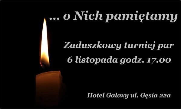 Z przyczyn niezależnych od MZBS - zmuszeni jesteśmy odwołać turniej par barometr w środę 23 października. Jak zawsze w takich wypadkach, bardzo proszę o poinformowanie partnerów, znajomych itp. - telefonicznie.